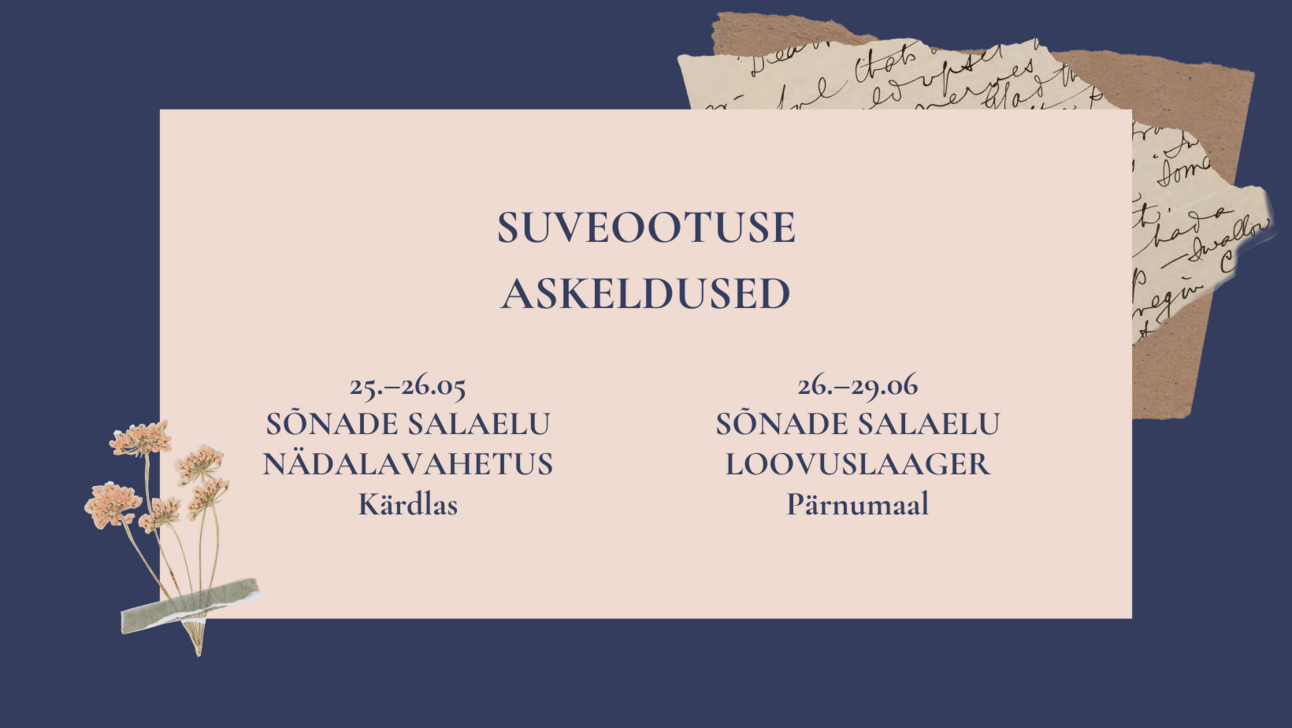 Mida ma juba võin öelda, on see, et 25.–26. mail toimub Kärdlas Kordoni kunstiresidentuuris üks eriti mõnus Sõnade salaelu nädalavahetuse kursus. Mind juba praegu teeb elevaks selle paiga loominguline potentsiaal. Ja mõelge – varasuvine Hiiumaa! Kursus on jõukohane kõigile kirjutajatele ja avastajatele. Täpsem info kursuse kohta ilmub õige pea ka Biblionaudi kodulehele ja teistesse kanalitesse. Kel tekkis põletav huvi, kirjuta muidugi kohe, ja räägin lähemalt.